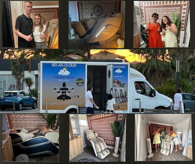 - Relax-Cloud, en parfaite autonomie, se déplace sur votre lieu de travail, ou au plus près selon les possibilités de stationnement